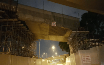 Construction of the new, single lane flyover was carried out across live traffic, spanning over slip roads and main expressway carriageway. With public safety being the top priority, emphasis was placed on ensuring the integrity of falsework for the girder construction.