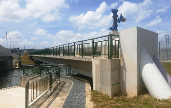 Since both the vehicular and utility bridges were constructed across an existing canal which was also to be widened, a comprehensive work process was outlined to ensure the safety of project team. Besides, a tidal gate was devised to prevent sea water from entering during high tight while the dry weather flow was being diverted during different stages of operation.