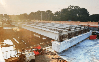 Before the construction of vehicular bridge, two water pipes of 500 mm and 700 mm in diameter were repositioned onto the utility bridge established with prestressed precast (PSPC) beams, ranging from 20 m to 26 m in length with approximate weights of 80 tonnes to 110 tonnes. Subsequently, three crossheads of 16 m by 1 m were erected to receive eighteen PSPC beams, ranging from 12 m to 26 m in length and 50 tonnes to 60 tonnes in weight, for the construction of vehicular deck slabs with an overall span of 67 m.