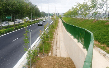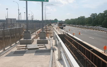 At the same time, a stretch of 80 m permanent retaining structure with 12 m cast-in sheet piles and skin wall finishing was formed to cater for the differences in carriageway level while approximately 100 m of Changi Airport’s security fencing was relocated due to the widening works.