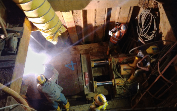 Erection of sewer manhole with 12-m circular vortex drop to reduce effect of failing flow