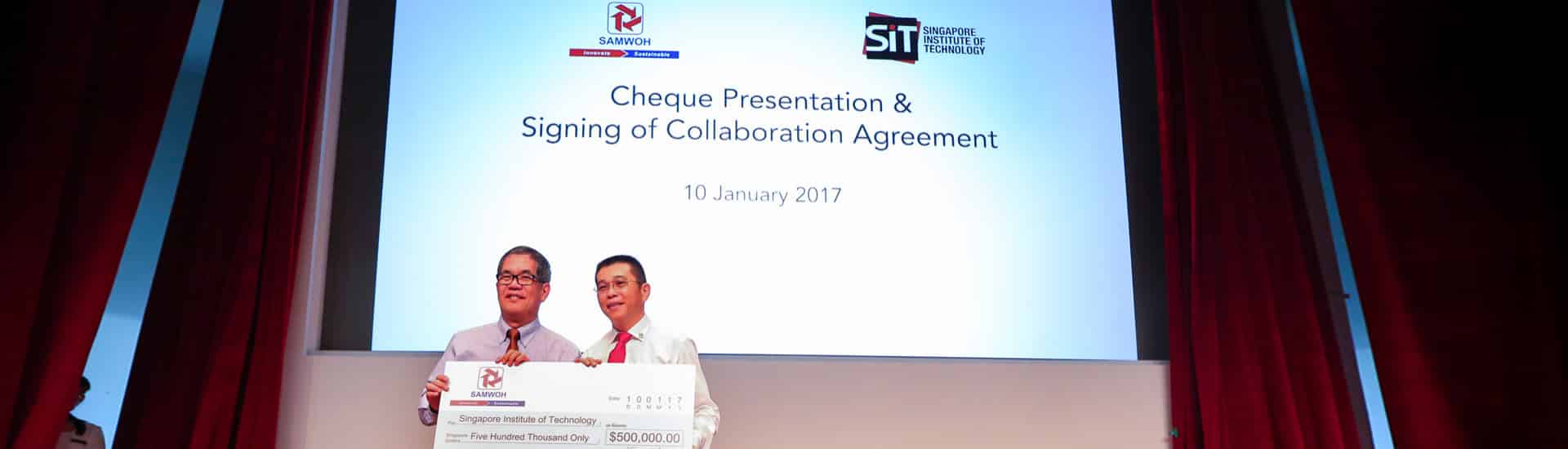 Our Group had previously contributed S$200,000 to SIT in 2014 to establish the Samwoh Corporation Bursary. This bursary was set up to assist undergraduates enrolled in the Sustainable Infrastructure Engineering programmes at SIT with financial challenges.
